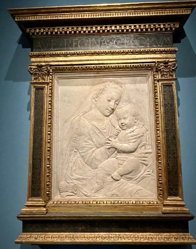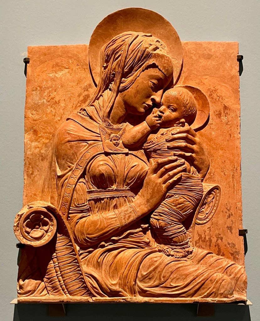 Next is another in the series of terracotta ‘Virgin and Child’ works created for private devotional purposes, this one in 1450-55.