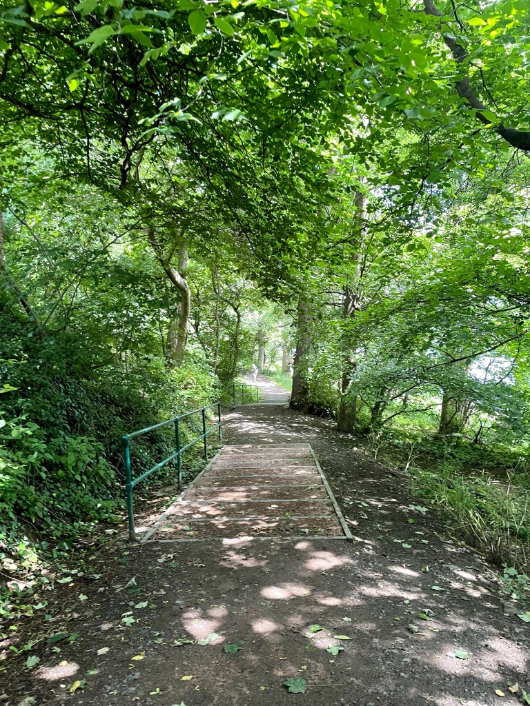 We had set off early, as the weather forecast was foreboding, but felt positive and energised as we made good time along a cycle way through pleasant woodlands.