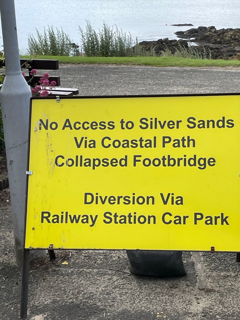 Now I found myself on very familiar ground from my days living here. I have even walked the sections from Aberdour to Burntisland and from Kinghorn to Kirkcaldy before and still visit the beaches at Kinghorn and Pettycur to kayak. This was a day I was very much looking forward to. However, we met an early hiccup when we encountered a sign at the start advising us that the path was closed due to a land slip and a diversion would be required. Having trudged back uphill to the main road I couldn’t help but think it would have been more thoughtful to place the sign at the top of the road!