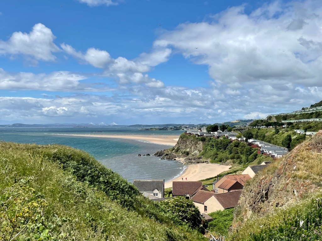 The tide being high, the option to walk across the sand was off the table so we headed inland and along the road up past the monument to Alexander III, who fell to his death here, and Pettycur Bay Holiday Park then into Kinghorn.